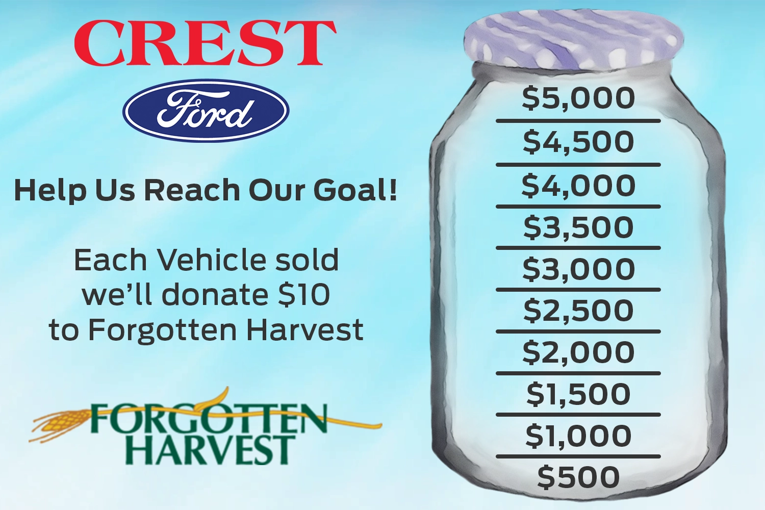 Now through the end of July, Crest Ford is donating $10 to Forgotten Harvest