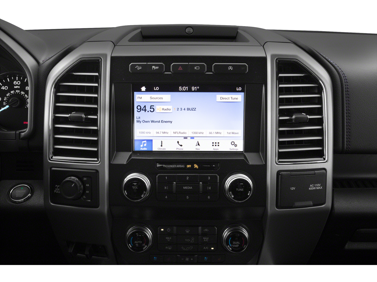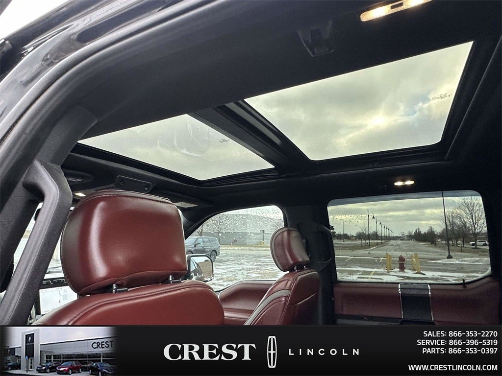 Equipment Group 701A Luxury (Adaptive Cruise Control and Tailgate Step w/Tailgate Lift Assist), GVWR: 7,050 lbs Payload Package, Technology Package (Active Park Assist and Lane-Keeping System), Trailer Tow Package (Class IV Trailer Hitch Receiver, Engine Oil Cooler, Pro Trailer Backup Assist, and Upgraded Front Stabilizer Bar), 4WD, 10 Speakers, 20 Polished Aluminum Wheels, 3.31 Axle Ratio, 4-Wheel Disc Brakes, ABS brakes, Adjustable pedals, Air Conditioning, Alloy wheels, AM/FM radio: SiriusXM, AppLink/Apple CarPlay and Android Auto, Auto High-beam Headlights, Auto tilt-away steering wheel, Auto-dimming door mirrors, Auto-dimming Rear-View mirror, Automatic temperature control, Black Unique Multi-Contour Leather Bucket Seats, Brake assist, Bumpers: body-color, Compass, Delay-off headlights, Driver door bin, Driver vanity mirror, Dual front impact airbags, Dual front side impact airbags, Electronic Stability Control, Emergency communication system: SYNC 3 911 Assist, Exterior Parking Camera Rear, Front anti-roll bar, Front Bucket Seats, Front Center Armrest, Front dual zone A/C, Front fog lights, Front reading lights, Front wheel independent suspension, Fully automatic headlights, Garage door transmitter, Genuine wood door panel insert, Heated door mirrors, Heated front seats, Heated rear seats, Heated steering wheel, Illuminated entry, Integrated Trailer Brake Controller, Low tire pressure warning, Memory seat, Navigation System, Occupant sensing airbag, Outside temperature display, Overhead airbag, Overhead console, Panic alarm, Passenger door bin, Passenger vanity mirror, Pedal memory, Power door mirrors, Power driver seat, Power passenger seat, Power steering, Power windows, Radio data system, Radio: B&O Sound System by Bang & Olufsen, Rain sensing wipers, Rear Parking Sensors, Rear reading lights, Rear seat center armrest, Rear step bumper, Rear window defroster, Remote keyless entry, Security system, SiriusXM Radio, Speed control, Speed-sensing steering, Split folding rear seat, Steering wheel memory, Steering wheel mounted audio controls, SYNC 3, Tachometer, Telescoping steering wheel, Tilt steering wheel, Traction control, Tray Style Floor Liner, Trip computer, Turn signal indicator mirrors, Twin Panel Moonroof, Variably intermittent wipers, Ventilated front seats, Voice-Activated Touchscreen Navigation, and Voltmeter.
