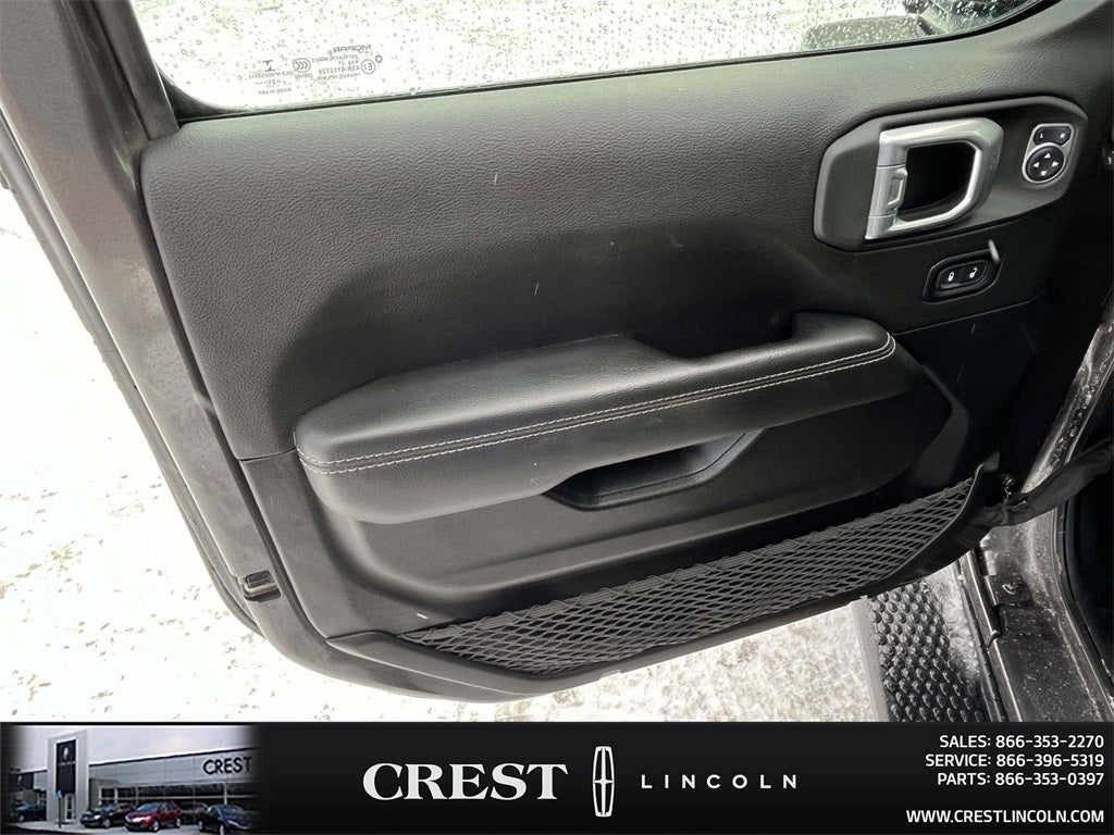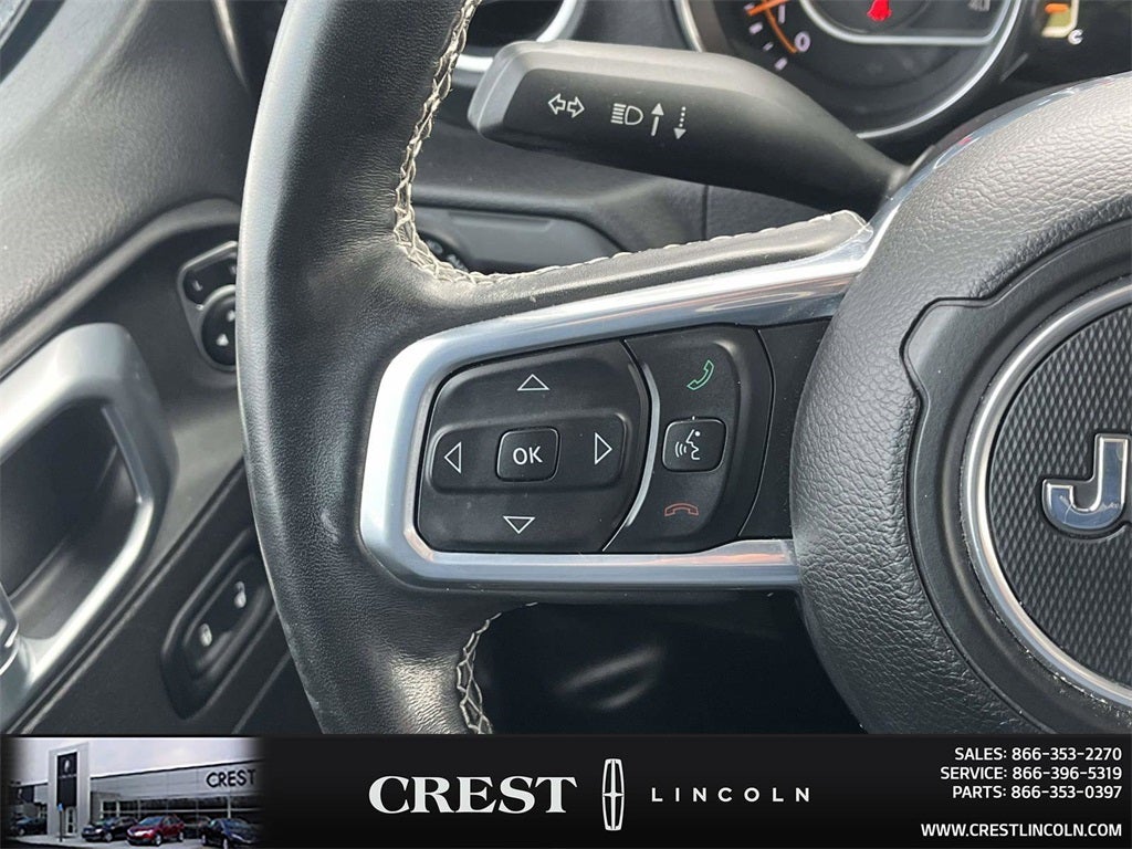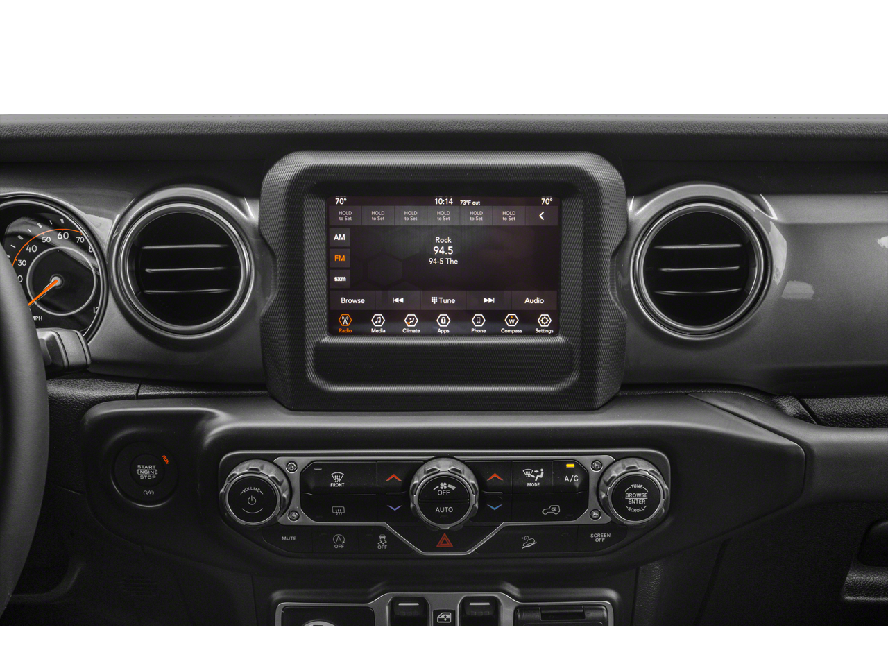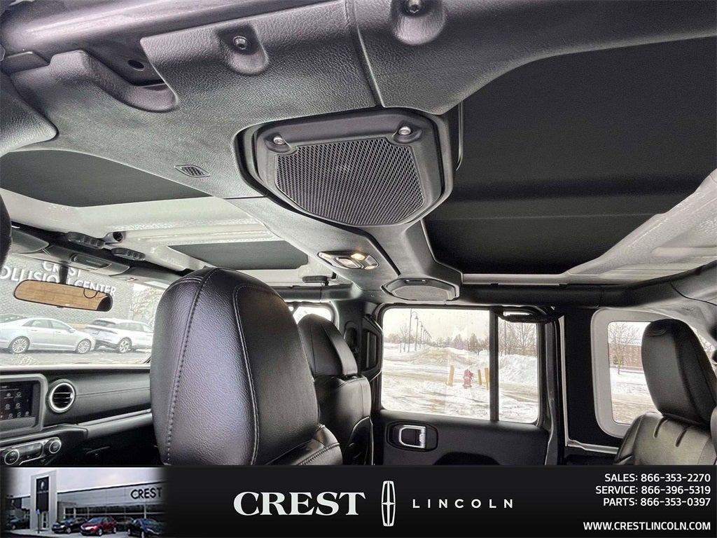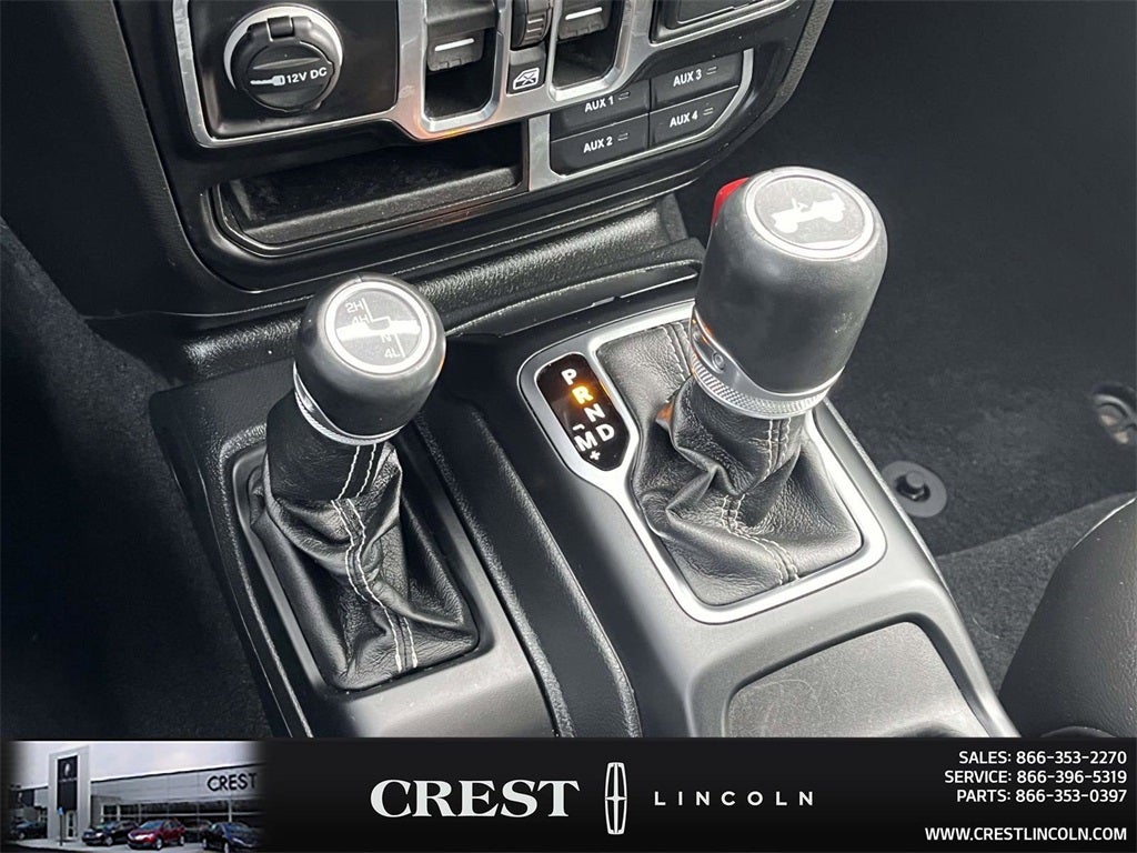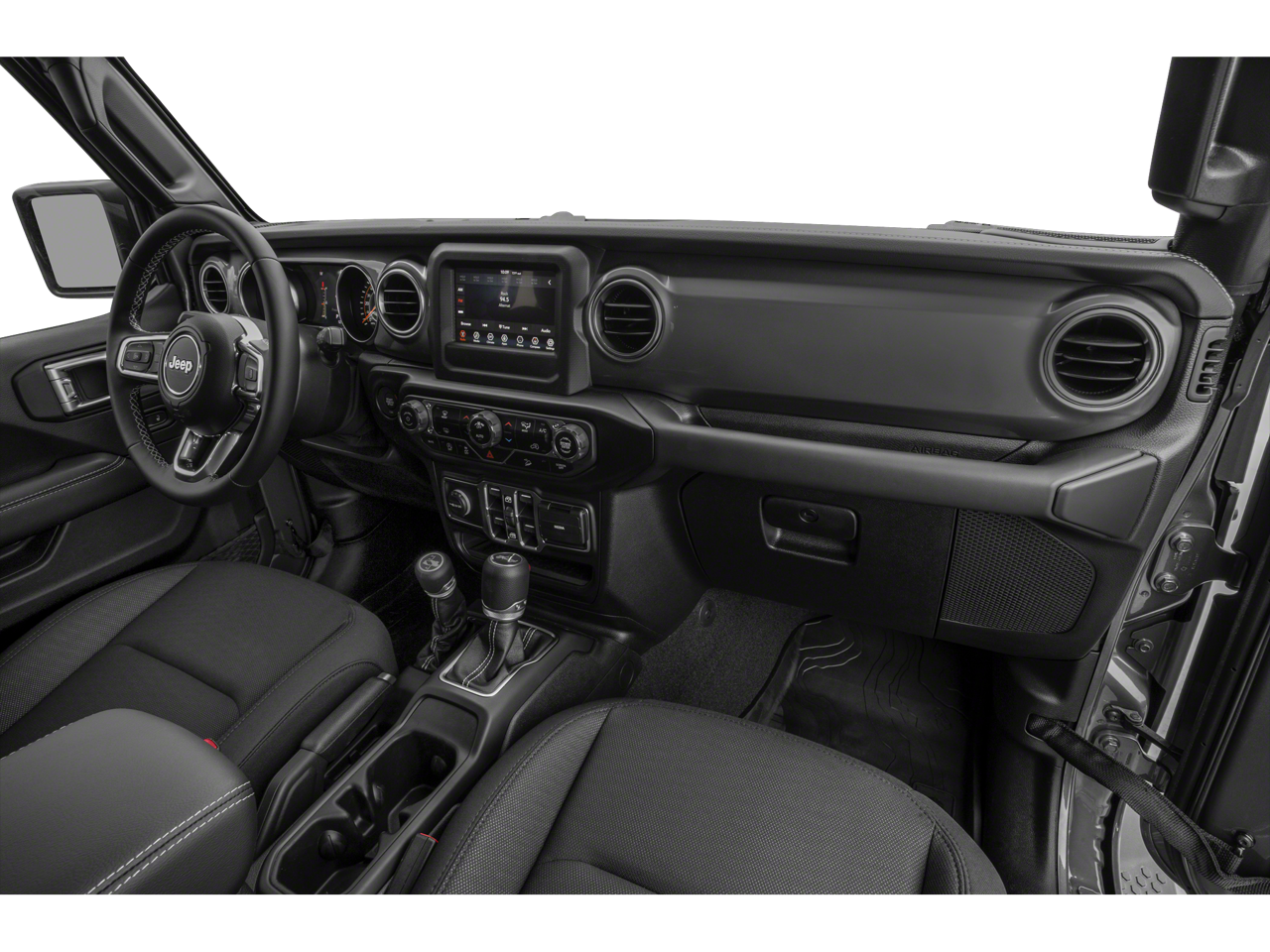 Cold Weather Group (Heated Front Seats and Heated Steering Wheel), LED Lighting Group (Daytime Running Lamps LED Accents, Front LED Fog Lamps, LED Premium Reflector Headlamps, and LED Taillamps), Quick Order Package 24G, Trailer Tow & HD Electrical Group (240 Amp Alternator, 7 & 4 Pin Wiring Harness, 700 Amp Maintenance Free Battery, Auxiliary Switches, and Class II Receiver Hitch), 3.45 Rear Axle Ratio, 4-Wheel Disc Brakes, 8 Speakers, ABS brakes, Air Conditioning, Alloy wheels, AM/FM radio: SiriusXM, Apple CarPlay, Apple CarPlay/Android Auto, Automatic temperature control, Aux Battery, Black 3-Piece Hard Top, Brake assist, Cloth Low-Back Bucket Seats, Compass, Delay-off headlights, Driver door bin, Driver vanity mirror, Dual front impact airbags, Dual front side impact airbags, Electronic Stability Control, Freedom Panel Storage Bag, Front anti-roll bar, Front Bucket Seats, Front Center Armrest w/Storage, Front dual zone A/C, Front fog lights, Front reading lights, Fully automatic headlights, Garage door transmitter, Google Android Auto, GPS Antenna Input, Heated door mirrors, Heavy Duty Suspension w/Gas Shocks, Illuminated entry, Integrated roll-over protection, Integrated Voice Command w/Bluetooth®, Leather steering wheel, Low tire pressure warning, MOPAR All-Weather Floor Mats (DISC), MOPAR Grab Handle Kit, MOPAR Hardtop Headliner, No Soft Top, Non-Lock Fuel Cap w/o Discriminator, Occupant sensing airbag, Outside temperature display, Panic alarm, ParkView Rear Back-Up Camera, Passenger door bin, Passenger vanity mirror, Power door mirrors, Power steering, Power windows, Radio data system, Radio: Uconnect 4 w/7 Display, Rear anti-roll bar, Rear reading lights, Rear Window Defroster, Rear Window Wiper/Washer, Remote keyless entry, Remote Proximity Keyless Entry, Remote Start System, Security system, Speed control, Split folding rear seat, Steering wheel mounted audio controls, Stop-Start Dual Battery System, Tachometer, Telescoping steering wheel, Tilt steering wheel, Traction control, Trip computer, Variably intermittent wipers, Voltmeter, and Wheels: 18 x 7.5 Polished w/Gray Spokes.