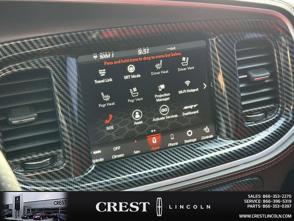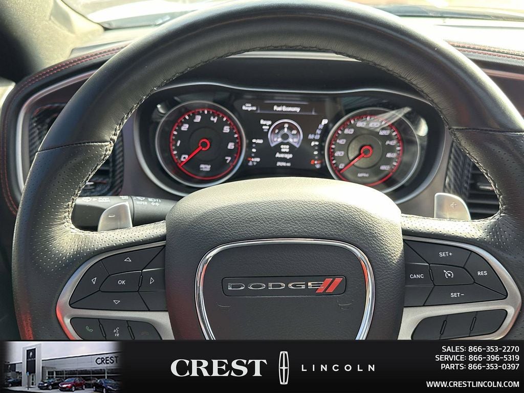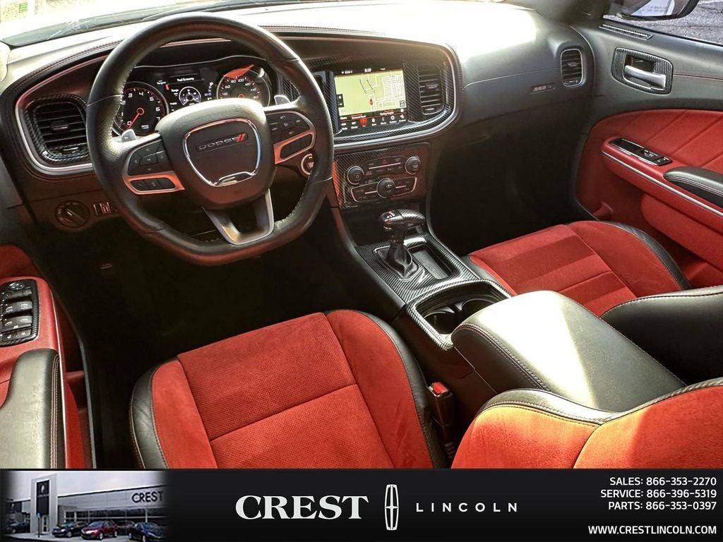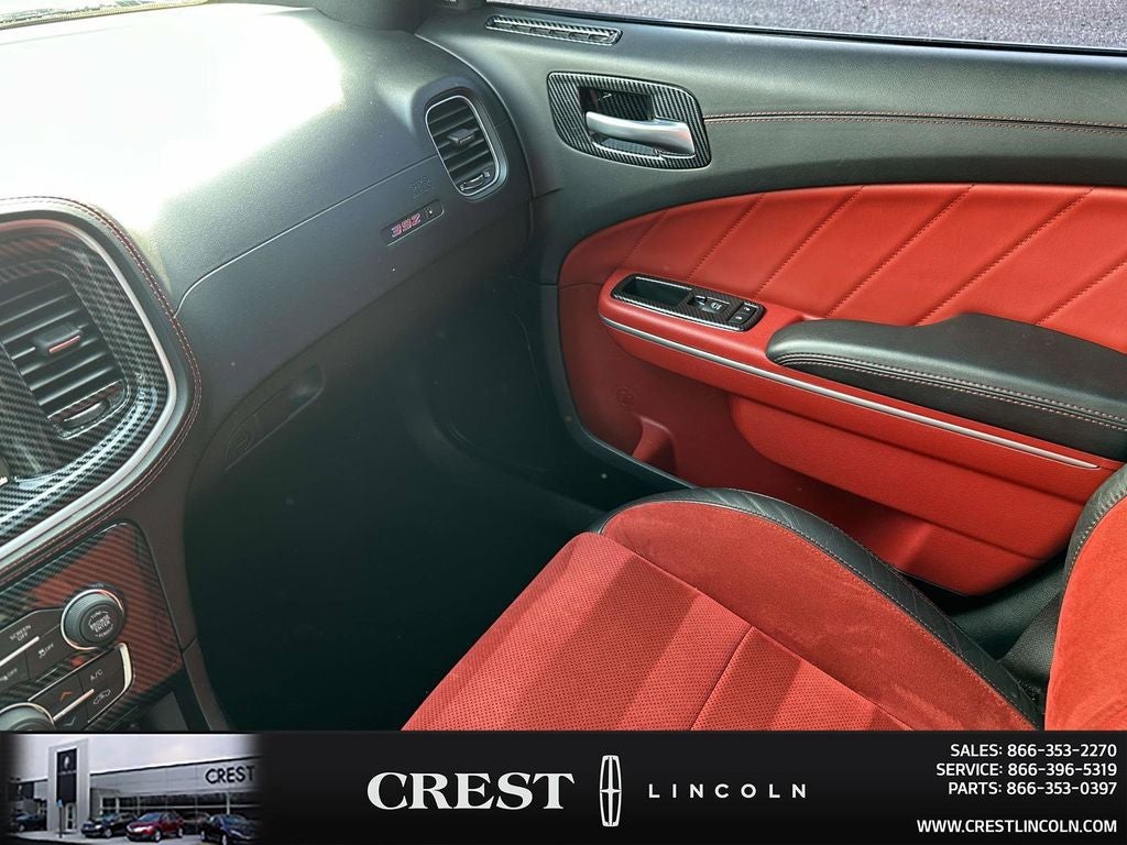 Driver Convenience Group (Bi-Function HID Projector Head Lamps), harman/kardon Audio Group (19 harman/kardon GreenEdge Speakers, harman/kardon GreenEdge Amp, and Surround Sound), Mopar Interior Appearance Group (Mopar Bright Door Sills, MOPAR Premium Floor Mats w/Logo, and Trunk Mat w/Logo), Navigation & Travel Group (1-Yr SiriusXM Guardian Trial, 2-Piece Shark Fin Antenna, 4G LTE Wi-Fi Hot Spot, 5-Year SiriusXM Traffic Service, 5-Year SiriusXM Travel Link Service, 8.4 Touchscreen Display, Apple CarPlay, For Details, Visit DriveUconnect.com, Google Android Auto, GPS Antenna Input, GPS Navigation, HD Radio, Integrated Center Stack Radio, Integrated Voice Command w/Bluetooth®, Media Hub (2 USB, AUX), Radio: Uconnect 4C Nav w/8.4 Display, SiriusXM Traffic Plus, SiriusXM Travel Link, and USB Host Flip), Plus Group (Auto Adjust In Reverse Exterior Mirrors, Auto-Dimming Exterior Driver Mirror, Black-Edged Premium Floormats, Blind Spot & Cross Path Detection, Blind Spot Memory/Power/Heat Mirror, Body Color Exterior Mirrors, Driver & Passenger Lower LED Lamps, Exterior Mirrors Courtesy Lamps, Exterior Mirrors w/Heating Element, Front Overhead LED Lighting, Heated 2nd Row Seats, Heated Front Seats, Illuminated Rear Cupholders, Power 2-Way Driver Lumbar Adjust, Power 2-Way Passenger Lumbar Adjust, Power Front Driver/Passenger Seats, Power Tilt/Telescope Steering Column, Premium-Stitched Dash Panel, Radio/Driver Seat/Mirrors Memory, Rear Seat Armrest w/Storage Cupholder, Scat Pack Logo Nappa/Alcantara Seat, and Ventilated Front Seats), Quick Order Package 21V Scat Pack Widebody (Adaptive Damping Suspension, All Speed Traction Control, Body Color Fender Flares, Brembo 6-Pot Fixed Front Caliper Brakes, Flat-Bottom Steering Wheel, Performance Shift Indicator, Rhombi 2-Pc Wheel Center Cap, and Widebody Competition Suspension), Widebody Package, Ruby Red/Black Artificial Leather, 4-Wheel Disc Brakes, 6 Speakers, ABS brakes, Air Conditioning, Alloy wheels, AM/FM radio: SiriusXM, Anti-whiplash front head restraints, Apple CarPlay/Android Auto, Auto-dimming Rear-View mirror, Automatic temperature control, Brake assist, Brake Calipers - Red, Bumpers: body-color, Cargo Net, Cloth Performance Seats w/Heat, Compass, Delay-off headlights, Driver door bin, Driver vanity mirror, Dual front impact airbags, Dual front side impact airbags, Electronic Stability Control, Emergency communication system: SiriusXM Guardian, Four wheel independent suspension, Front anti-roll bar, Front Bucket Seats, Front Center Armrest, Front dual zone A/C, Front fog lights, Front reading lights, Fully automatic headlights, Garage door transmitter: HomeLink, Heated door mirrors, Heated front seats, Heated steering wheel, Illuminated entry, Knee airbag, Leather Shift Knob, Low tire pressure warning, Occupant sensing airbag, Outside temperature display, Overhead airbag, Overhead console, Panic alarm, ParkView Rear Back-Up Camera, Passenger door bin, Passenger vanity mirror, Power door mirrors, Power driver seat, Power steering, Power Sunroof, Power windows, Radio: Uconnect 4C w/8.4 Display, Rear anti-roll bar, Rear reading lights, Rear seat center armrest, Rear window defroster, Remote keyless entry, Security system, Speed control, Speed-Sensitive Wipers, Split folding rear seat, Spoiler, Sport steering wheel, Steering wheel mounted audio controls, Tachometer, Telescoping steering wheel, Tilt steering wheel, Traction control, Trip computer, Variably intermittent wipers, and Wheels: 20 x 9 Lo Gloss Granite CrystaL.