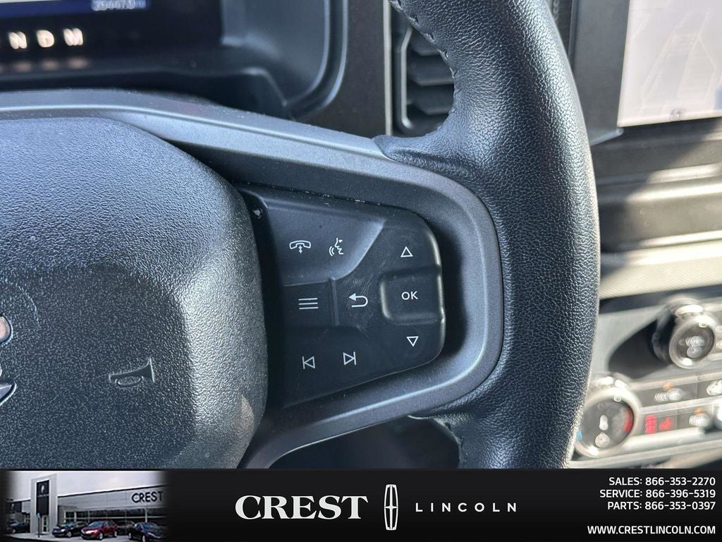 4-Wheel Disc Brakes, 6 Speakers, ABS brakes, Air Conditioning, AM/FM radio: SiriusXM with 360L, AM/FM Stereo, Auto High-beam Headlights, Brake assist, Cargo Area Protector, Compass, Delay-off headlights, Door Storage Bags, Driver door bin, Driver vanity mirror, Dual front impact airbags, Dual front side impact airbags, Electronic Stability Control, Emergency communication system: 911 Assist, Exterior Parking Camera Rear, Ford Performance Heavy-Duty Modular Front Bumper, Front anti-roll bar, Front Bucket Seats, Front Center Armrest, Front reading lights, Front wheel independent suspension, Fully automatic headlights, Heated door mirrors, Illuminated entry, Integrated roll-over protection, Keyless Entry Keypad, Low tire pressure warning, Occupant sensing airbag, Outside temperature display, Overhead airbag, Overhead console, Panic alarm, Passenger door bin, Passenger vanity mirror, Power door mirrors, Power steering, Power windows, Radio data system, Remote keyless entry, Security system, SiriusXM Radio w/360L, Speed control, Split folding rear seat, Steering wheel mounted audio controls, SYNC 4, Tachometer, Telescoping steering wheel, Tilt steering wheel, Traction control, Trip computer, and Variably intermittent wipers.