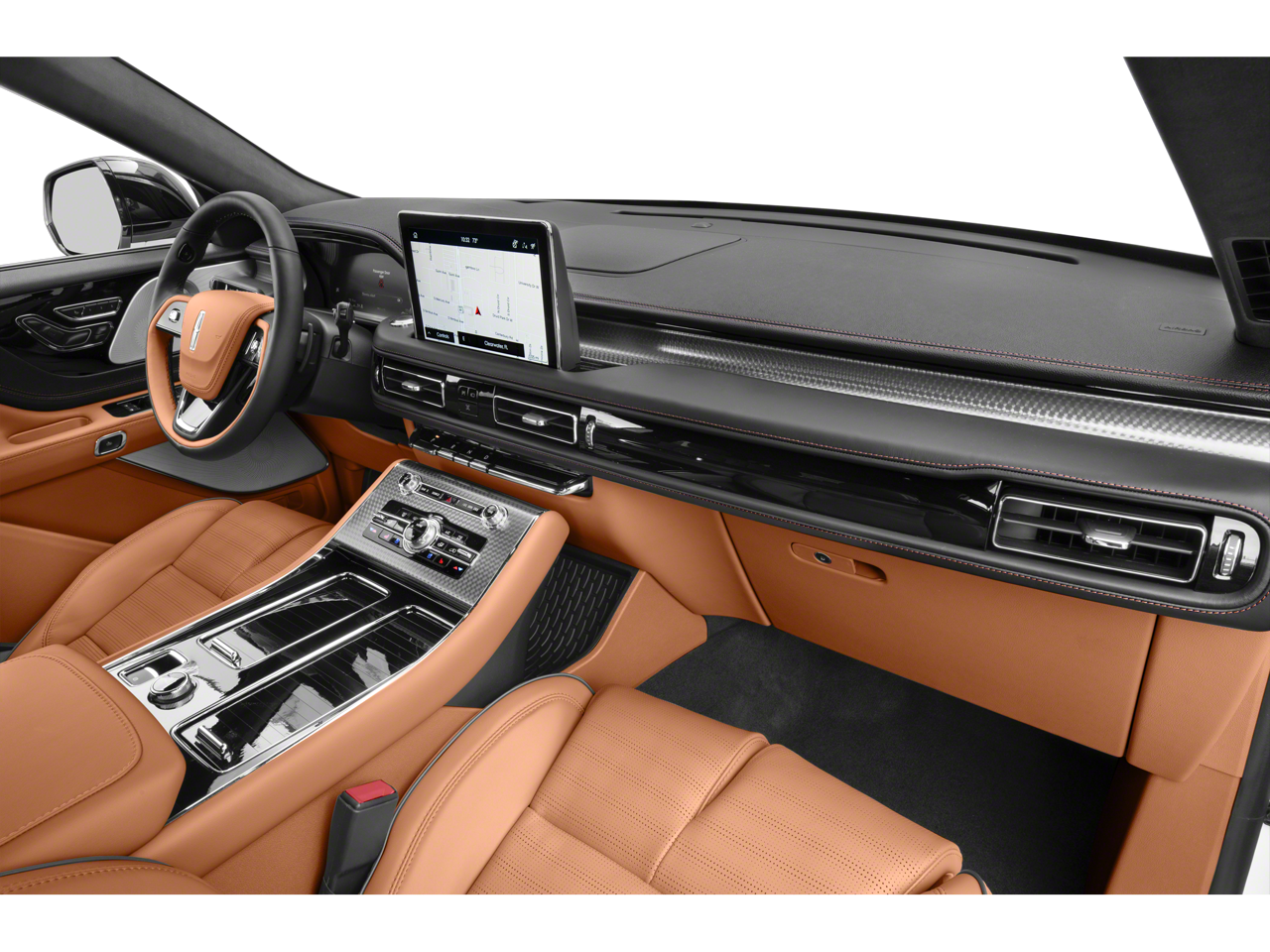 Equipment Group 800A, Lincoln CPO - Lincoln Black Label Program Certified, 28 Speakers, 3.58 Axle Ratio, 30-Way Perfect Position Seats w/Active Motion, 3rd row seats: split-bench, 4-Wheel Disc Brakes, ABS brakes, Adaptive suspension, Air Conditioning, All-Weather 1st & 2nd Row Floor Liners (16A), Alloy wheels, AM/FM radio: SiriusXM, Audio memory, Auto High-beam Headlights, Auto-dimming door mirrors, Auto-dimming Rear-View mirror, Automatic temperature control, Brake assist, Bumpers: body-color, Compass, Delay-off headlights, Door auto-latch, Driver door bin, Driver vanity mirror, Dual front impact airbags, Dual front side impact airbags, Electronic Stability Control, Emergency communication system, Four wheel independent suspension, Front anti-roll bar, Front Bucket Seats, Front Center Armrest, Front dual zone A/C, Front fog lights, Front reading lights, Fully automatic headlights, Garage door transmitter, Hands-Free Liftgate Delete, Head restraints memory, Heads-Up Display, Heated door mirrors, Heated front seats, Heated rear seats, Heated steering wheel, HVAC memory, Illuminated entry, Knee airbag, Leather steering wheel, Low tire pressure warning, Memory seat, Navigation System, Occupant sensing airbag, Outside temperature display, Overhead airbag, Overhead console, Panic alarm, Passenger door bin, Passenger vanity mirror, Power adjustable front head restraints, Power door mirrors, Power driver seat, Power Liftgate, Power moonroof: Panoramic Vista Roof, Power passenger seat, Power steering, Power windows, Radio data system, Radio: Revel Ultima 3D Audio System w/28 Speakers, Rain sensing wipers, Rear air conditioning, Rear anti-roll bar, Rear audio controls, Rear dual zone A/C, Rear reading lights, Rear window defroster, Rear window wiper, Remote keyless entry, Savannah Leather Heated/Ventilated Seats (76E), Savannah Leather Heated/Ventilated Seats (76J), Security system, SiriusXM Radio, Speed control, Speed-Sensitive Wipers, Split folding rear seat, Spoiler, Steering wheel memory, Steering wheel mounted A/C controls, Steering wheel mounted audio controls, SYNC 3 Communication & Entertainment System, Tachometer, Telescoping steering wheel, Tilt steering wheel, Traction control, Trip computer, Turn signal indicator mirrors, Variably intermittent wipers, Ventilated front seats, Ventilated rear seats, and Wheels: 22 Bright-Machined Aluminum.