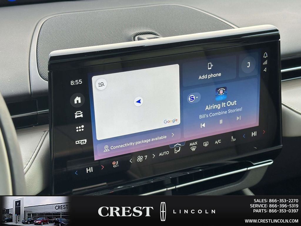 - Radio: AM/FM -inc: 10 speakers including subwoofer, Lincoln Connect, 11.1" centerstack touchscreen, 48" display w/configurable instrument cluster, 5G connectivity, Google maps, wireless Apple CarPlay and Android Auto compatibility, 911 Assist, Lincoln premium connectivity (1-year plan included), SiriusXM w/360L w/a 3-month prepaid subscription including super categories/live sports categories, For You recommendations and SiriusXM listener profiles, SiriusXM audio and data services each require a subscription sold separately, or as a package, by Sirius XM Radio Inc, Your SiriusXM service will automatically stop at the end of your trial unless you decide to subscribe, If you decide to continue service after your trial, the subscription plan you choose will automatically renew thereafter and you will be charged according to your chosen payment method at then-current rates, Fees and taxes apply, To cancel you must call Sirius XM at 1-866-635-2349, See SiriusXM customer agreement for complete terms at www.siriusxm.com, All fees and programming subject to change, Not all vehicles or devices are capable of receiving all services offered by SiriusXM, Current information and features may not be available in all locations, or on all receivers, Satellite and streaming lineups vary slightly