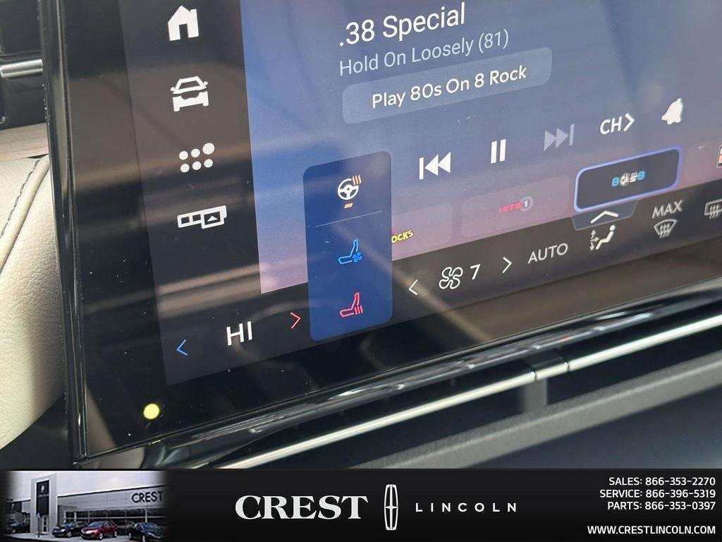 Equipment Group 202A (110V Power Converter, Auto Air Refresh, Digital Scent, Hands-Free Power Liftgate, Lincoln BlueCruise Equipped (4-Years Included), Panoramic Vista Roof, Rear Heated Seats w/Switch Control, and Revel Audio System w/14 Speakers & HD Radio), 10 Speakers, 3.81 Axle Ratio, 360 Degree Camera, 4-Wheel Disc Brakes, ABS brakes, Active Park Assist 2.0, Adaptive suspension, Air Conditioning, Alexa Built-In, Alloy wheels, AM/FM Radio, AM/FM radio: SiriusXM with 360L, Apple CarPlay/Android Auto, Auto High-beam Headlights, Auto tilt-away steering wheel, Auto-dimming Rear-View mirror, Automatic temperature control, Blind Spot Info. System w/Cross-Traffic Alert, Brake assist, Bumpers: body-color, Compass, Delay-off headlights, Driver door bin, Driver vanity mirror, Dual front impact airbags, Dual front side impact airbags, Electronic Stability Control, Emergency communication system: 911 Assist, Exterior Parking Camera Rear, Four wheel independent suspension, Front anti-roll bar, Front Bucket Seats, Front Center Armrest w/Storage, Front dual zone A/C, Front reading lights, Fully automatic headlights, Garage door transmitter: HomeLink, Heated door mirrors, Heated front seats, Heated steering wheel, Illuminated entry, Intelligent Adaptive Cruise Control, Knee airbag, Leather steering wheel, Lincoln BlueCruise Equipped (90-Day Trial), Low tire pressure warning, Memory seat, Navigation System, Occupant sensing airbag, Outside temperature display, Overhead airbag, Overhead console, Panic alarm, Passenger door bin, Passenger vanity mirror, Power door mirrors, Power driver seat, Power Liftgate, Power passenger seat, Power steering, Power windows, Prem Lthr-Trimmed Heated/Ventilated Captain Seats, Radio data system, Rain sensing wipers, Rear anti-roll bar, Rear reading lights, Rear seat center armrest, Rear window defroster, Rear window wiper, Remote keyless entry, Security system, Speed control, Speed-sensing steering, Speed-Sensitive Wipers, Split folding rear seat, Spoiler, Steering wheel memory, Steering wheel mounted audio controls, Tachometer, Telescoping steering wheel, Tilt steering wheel, Traction control, Trip computer, Turn signal indicator mirrors, Variably intermittent wipers, Ventilated front seats, and Wheels: 21 Ultra Bright Machined Aluminum.