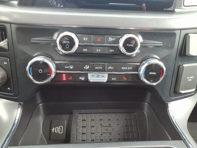 This F-150 XLT also comes equipped with a wealth of premium features, including Dual-Zone Electronic Automatic Temperature Control, 400W Cab & Bed Outlets, Intelligent Access with Push Button Start, and a Wrapped Steering Wheel. The XLT Black Appearance Package adds a bold, assertive look with a Black Grille, Gray Box Side Decal, and Black Exterior Badging.