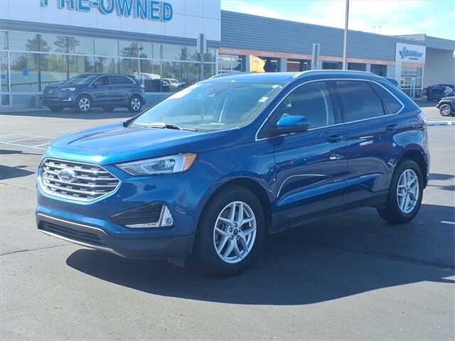 Atlas Blue Metallic 2021 Ford Edge SEL AWD 8-Speed Automatic EcoBoost 2.0L I4 GTDi DOHC Turbocharged VCT 21/28 City/Highway MPG